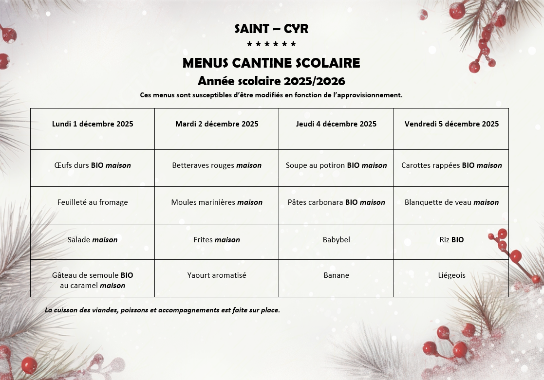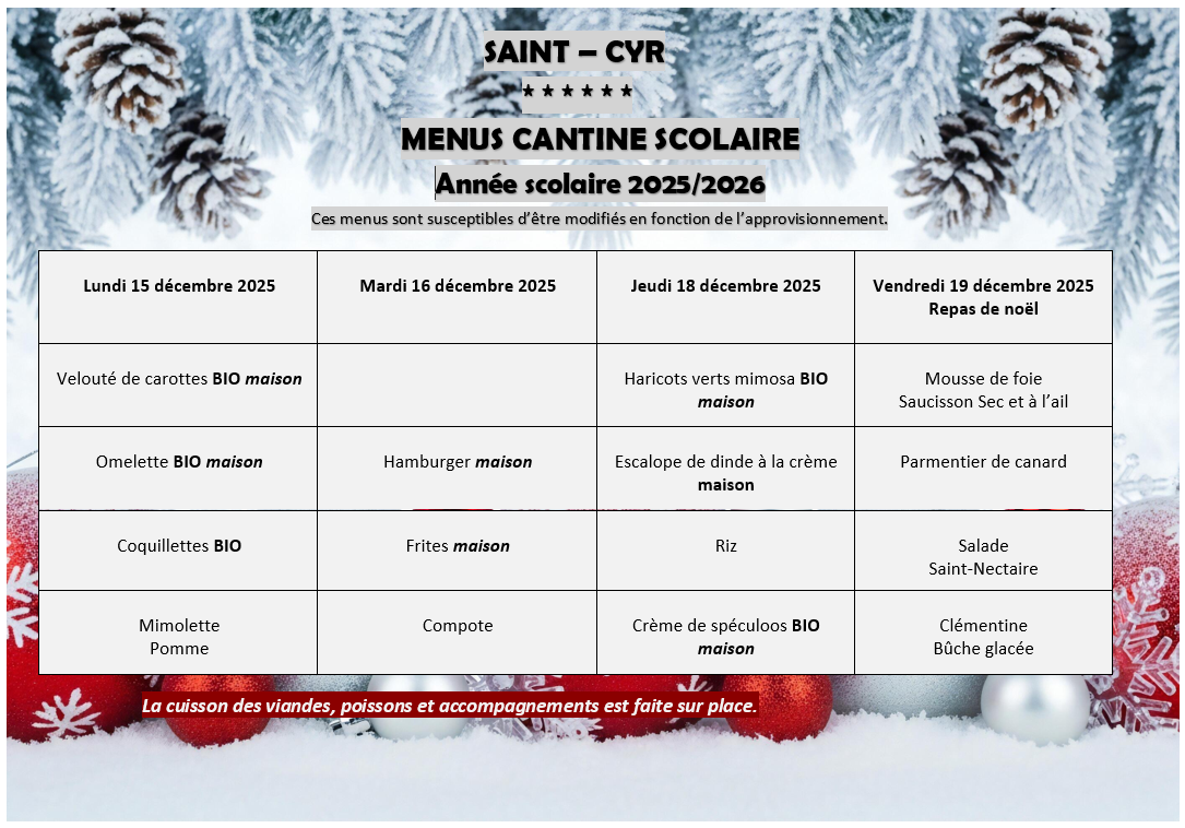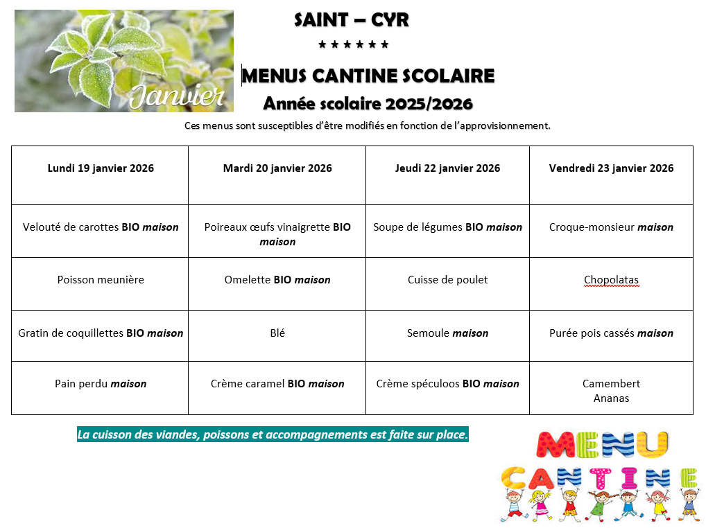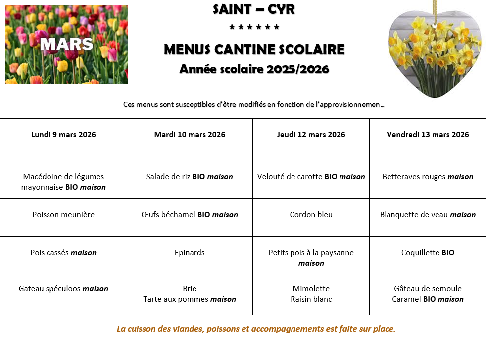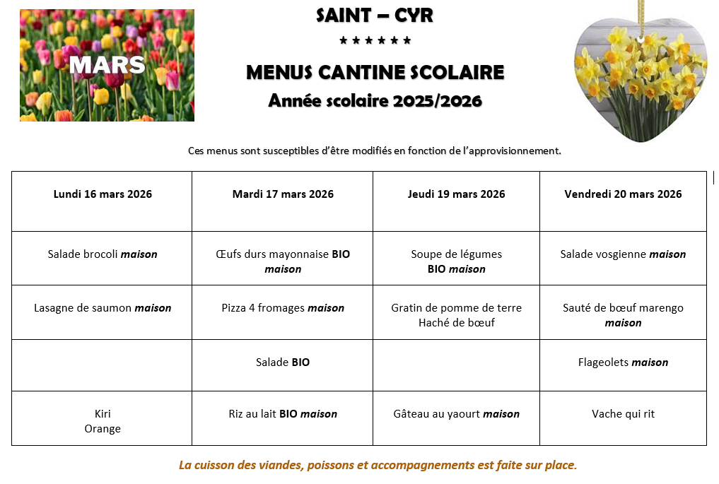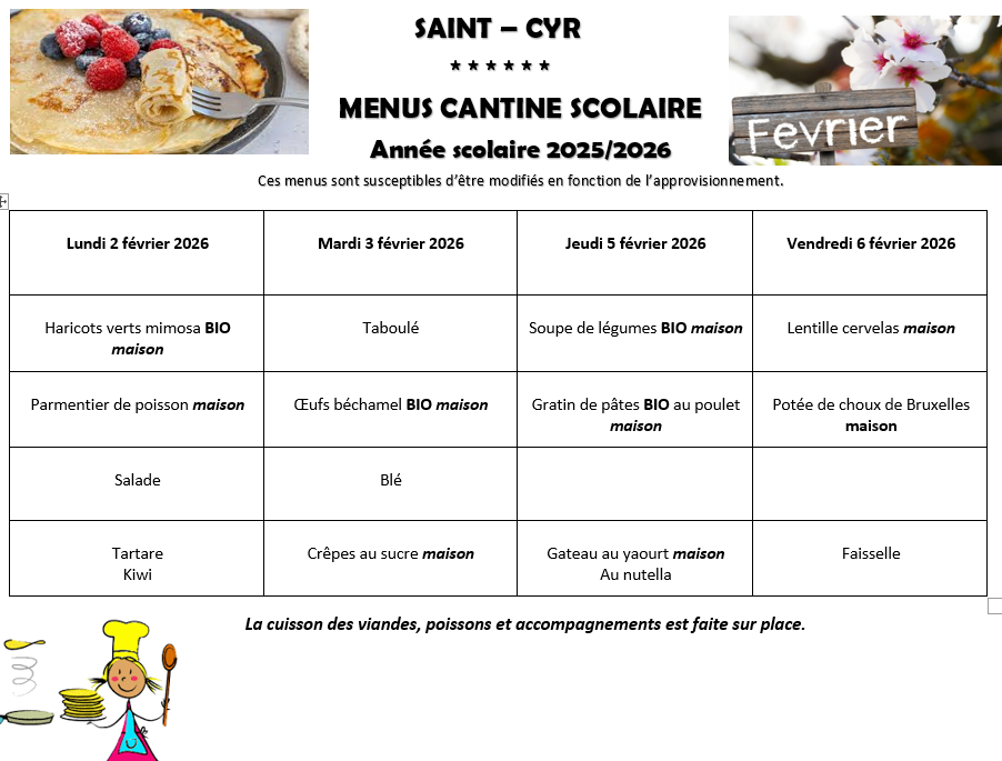 Marianne, la cantinière, cuisine les repas avec des produits frais et introduit des produits BIO dans les menus. Nos fournisseurs: Consulter les menus